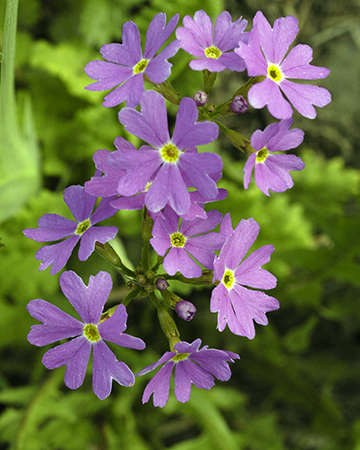 This primula is very hardy in interior Alaska. It is one of the first plants to break dormancy with a show of lime green leaves. It blooms with a profusion of long-lasting deep pink blossoms that fade to paler pink as they age. It sows seed to form drifts.