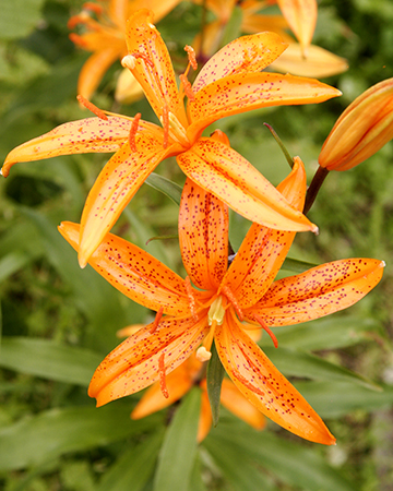 This species has whorls of leaves and star shaped upfacing blooms in bright orange.